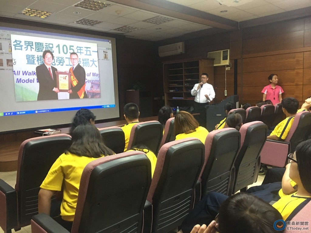 ▲台南市六信高中校友范樹男,受邀回母校,與學弟妹分享他圓夢經驗。(圖/記者林悅攝)