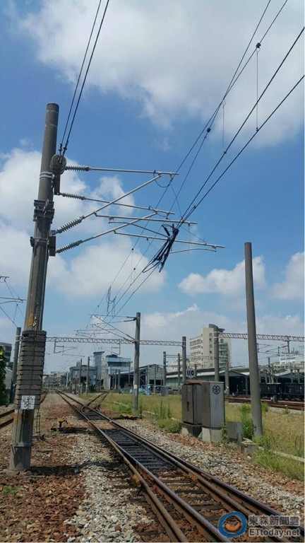 ▲台鐵彰化集電弓斷落,一度雙線不通。(圖/台鐵提供)
