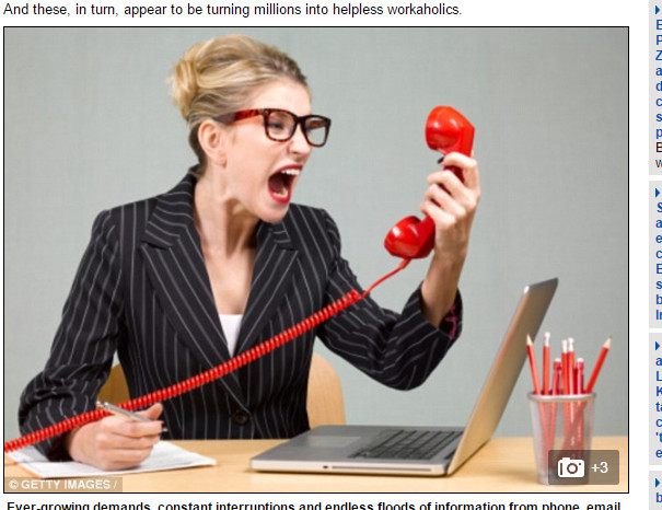 根據《每日郵報》報導,最新的研究顯示,現代的上班族每天都在瘋狂的應付來自電話、電子郵件、紙本文件等不同來源的資訊,而這些宛如洪水般永無止盡增長的訊息量,正讓一些心理疾病,如成人過動症與強迫症,在辦公室間蔓延,造成上百萬個「無助的工作狂」。
