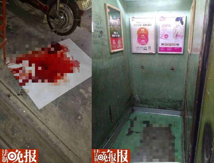 ▲北京58歲老翁左腳遭電梯狠「咬」拖行,現場到處血跡斑斑。(圖/翻攝自大陸《法制晚報》)