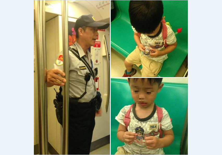 ▲高捷捷運警查在車廂內執勤還一邊逗小弟弟開心,令網友大讚暖男警員。(圖/翻攝自爆料公社)