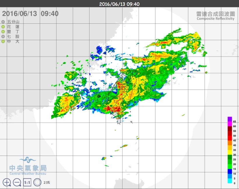 氣象局今天上午針對18縣市發布豪大雨特報,台中以南地區有局部大雨或豪雨發生的機率,苗栗以北地區、台東山區及澎湖有局部大雨發生的機率,請注意雷擊、強陣風。鄭明典也說,「雨帶連續,在還發展中,這一波雨勢持續時間會比較長,路上行車請小心~」