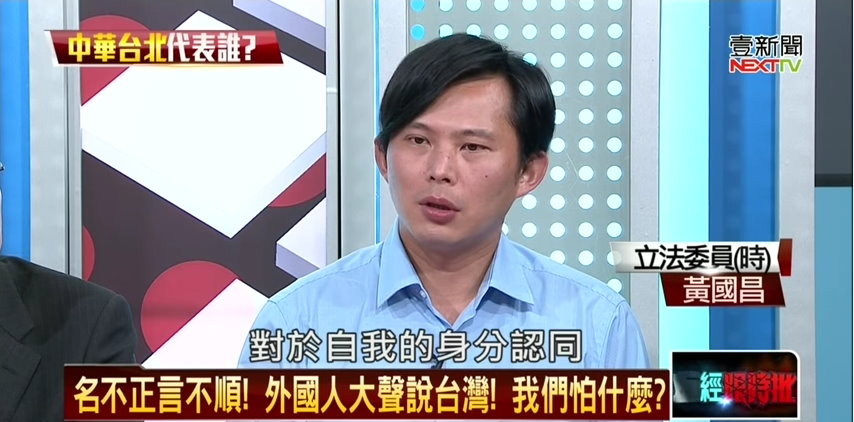 行政院長林全日前在立法院備詢時談到,「Chinese Taipei就是中華民國」,引起社會對於正名的討論。時代力量立委黃國昌12日在政論節目上直言,如果我們對自己的身分認同都不願意大聲說出來,那國際上還有誰會幫忙講話?