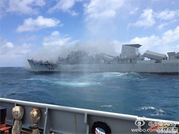 ▲解放軍鎮江軍艦被東風21D擊中,艦橋整個被擊垮。(圖/翻攝自李蘇寧微博)