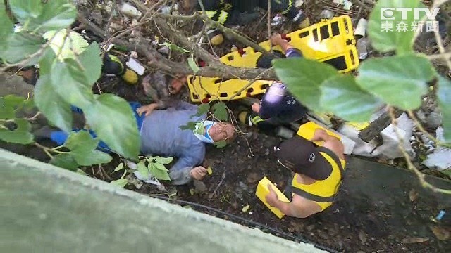 「啊,我的肋骨……」黃姓男子掉落到3、4公尺下的橋底,意識清醒,消防隊員要幫他進行頸部固定時,痛得哇哇大叫,只見他表情相當痛苦,不斷哀號。