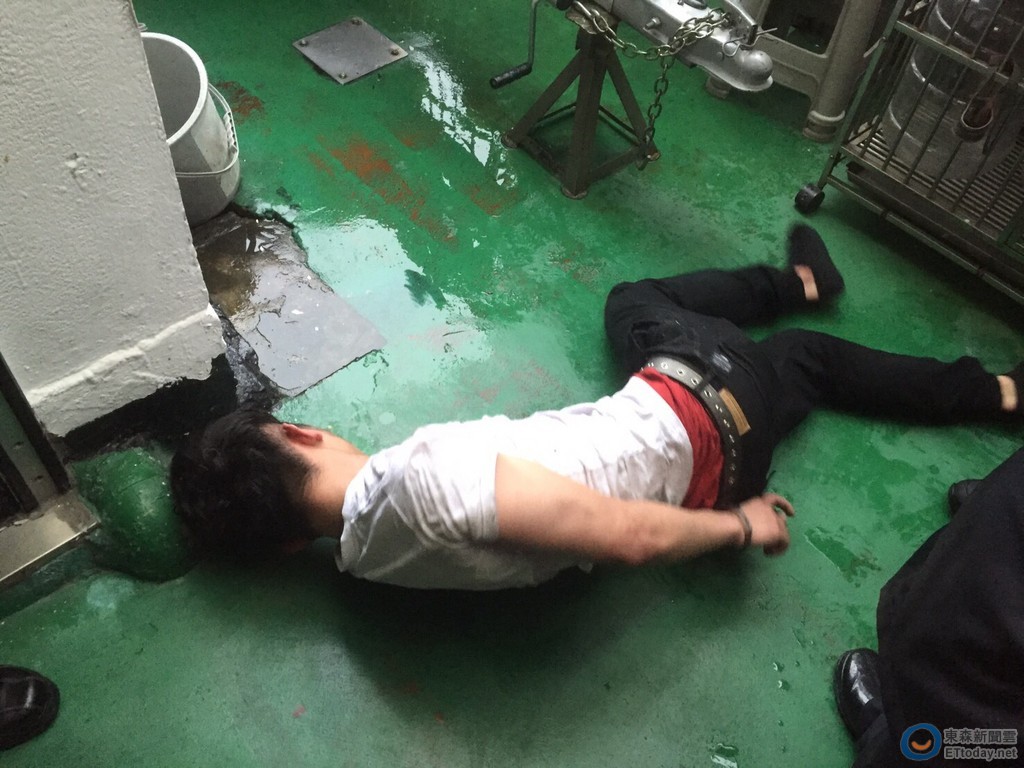 被制伏在地的闕男情緒相當不穩,還口吐白沫,警方到場後將他送往台北馬偕醫院治療、施打鎮定劑,目前仍在醫院觀察中,詳細犯案動機還有待釐清。