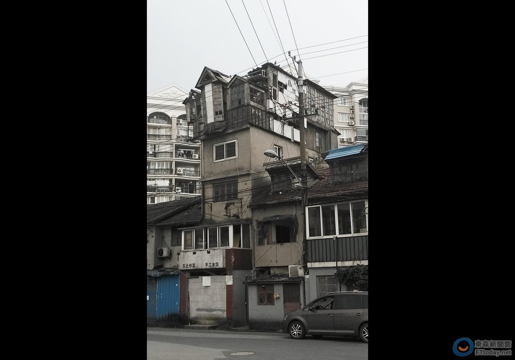 這幢帶有「歐洲城堡」味道的鴿舍位於虹口區梧州路,距離著名的1933老場坊僅百米之遙,樓總高5層,遠看像是堆疊上去的積木,又像是「空中之城」,對比附近3層的樓房顯得特別突兀。事實上,這棟建築的真名是興德鴿舍,約在1970到1980年代就已搭建,牆面已有剝落痕跡,看起來搖搖欲墜。