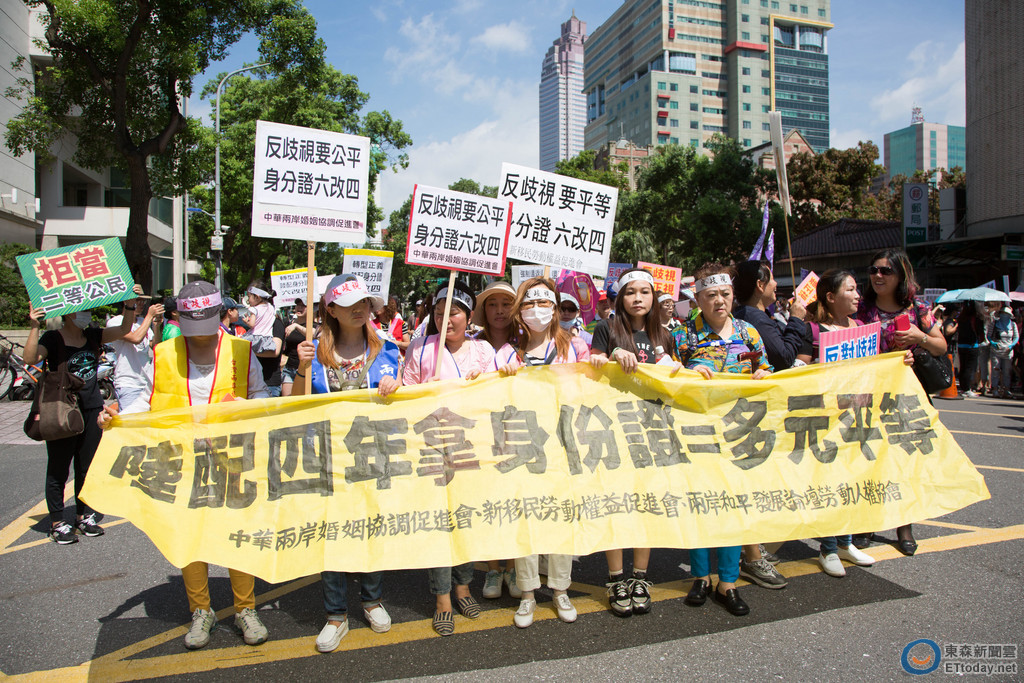 ▲陸配在立法院外呼籲平等對待。(圖/記者季相儒攝)