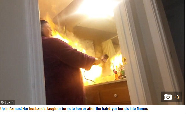 據英國《每日郵報》(Daily Mail)報導,國外一名男子想和妻子開玩笑,便在妻子的吹風機中倒入大量嬰兒爽身粉,不知情的妻子打開吹風機開關後,先是噴處大量粉塵,之後被吹風機的高溫引燃,吹風機瞬間變成「火焰槍」,場面相當嚇人。