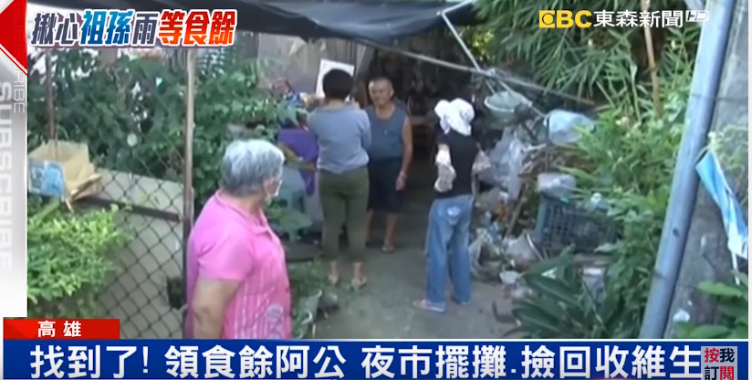 據悉,祖孫兩人是近一個月才到團膳公司領食餘,每次都默默地站在一旁等待,拿到食物後,滿心歡喜地帶著食餘回家準備當晚餐,這對祖孫住在橋頭一處被香蕉田圍繞的鐵皮屋,裡頭擺滿剛撿回來、準備要賣的資源回收,阿公說他主要在夜市擺攤,但生意不穩定,還得撿資源回收,貼補家用。