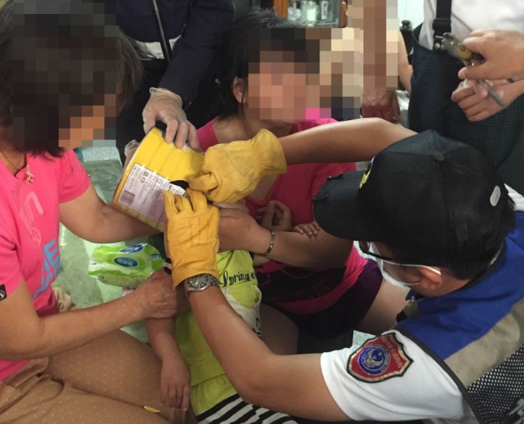 女童母親在不得已的情況下,趕緊帶著孩子到楠梓消防隊請求協助。消防隊員經評估之後,決定用利剪把奶粉罐剪開,於是使用大型剪刀,小心翼翼的處理,費了九牛二虎之力終於把奶粉罐拆下來。