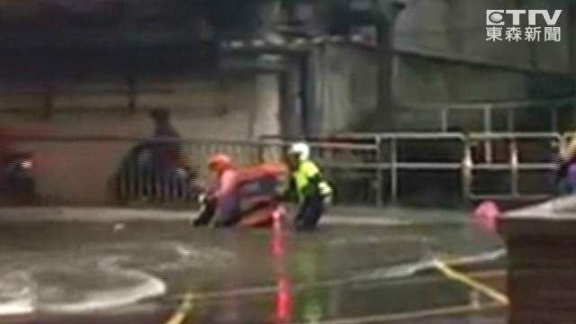 昨天午後各地下起豪大雨,基隆、南港和汐止等地淹水超誇張,其中有一個物流送貨員當時行經中興路人行地下道,卻被滾滾泥流困住了,水甚至淹到他膝蓋的位置,畫面相當驚險,一旁指揮的警察見狀,趕緊上前將車子慢慢往後拉出來,他才順脫險,所幸人都平安。