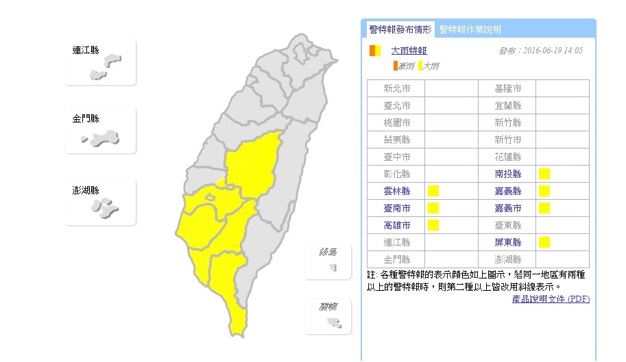 今天各地仍是炎熱,高溫多有35度,不過午後熱對流發展旺盛,中央氣象局下午2點5分,針對南投縣、雲林縣、嘉義縣、臺南市、嘉義市、高雄市、屏東縣等7縣市,發布了大雨特報,低窪地區的朋友慎防淹水,前往山區或海邊活動,也要隨意留意自身安全。