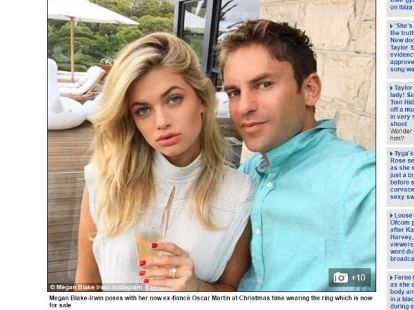 根據《每日郵報》(Daily Mail)報導,奧斯卡.馬丁(Oscar Martin)是澳洲電視台Pedestrian TV的創辦人,他原本結交了一名模特兒女友梅根.歐文(Megan Blake-Irwin),帥哥美女的組合讓人看了都稱羨不已。去年12月,馬丁花了3.38萬澳幣(約81萬新台幣)買了一只卡地亞鑽戒向歐文求婚成功。