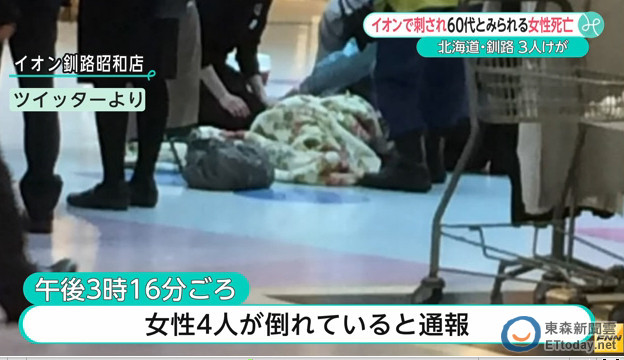 北海道釧路市21日下午3點15分傳出隨機殺人事件,一名男子闖進當地知名的購物商城「Aeon購物中心」,沿著1樓超市沿路拿著生魚片刀揮砍,上門消費的客人四處逃竄,其中一位60多歲的婦女當場倒地身亡,另外有1名70多歲的老人家重傷,2人輕傷。