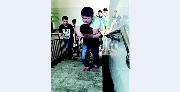 湖北省武漢市一所高中近日舉行招生考試,有一名特別的考生是由父親背著來參加考試,原來他因為車禍失去雙腿,多年來不管到哪裡都由父親背著行動,這種「脊背上的父愛」已經延續了6年多。
