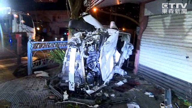 ▲轎車嚴重扭曲變形撞成廢鐵。