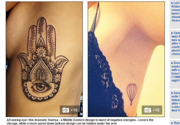 ▲國外年輕女性最近流行「乳側刺青」,往往在不經意的情況下小露性感。(圖/翻攝自每日郵報)