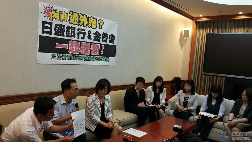 蘇治芬說,余男在103年發現後,持文件向日盛銀行嘉義分行申請支票託收明細及申請資料,但日盛銀行嘉義分行竟然拒絕;她認為,日盛銀行嘉義分行人員已經涉及違反銀行法,內部控制與稽核制度,也違反金融控股公司法與銀行法,金管會應該管一管。