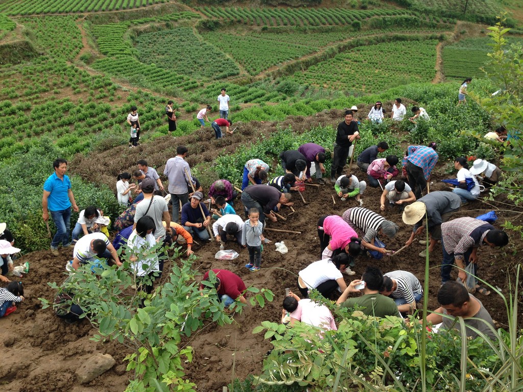 ▲大批民眾湧入浙江後張村奮力挖掘「紅寶石」。(圖/視覺中國CFP)