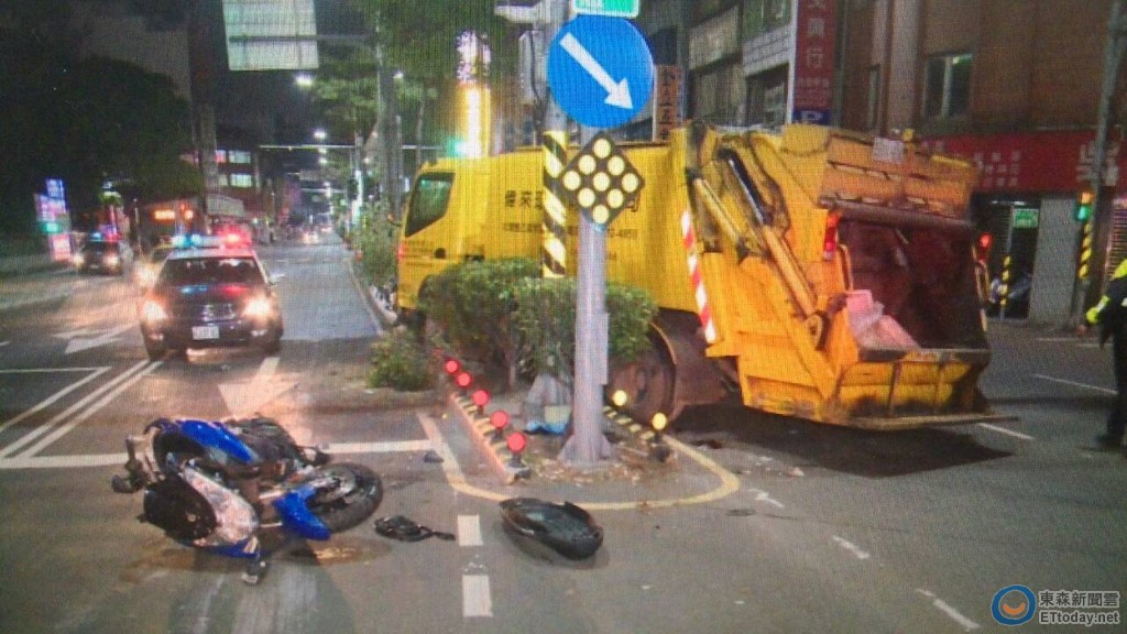 ▲新北環保局一部垃圾車在新莊疑因右轉未注意,撞倒機車並將騎士輾過,但幸未造成死亡事故。(圖/記者孫曜樟翻攝,資料畫面)