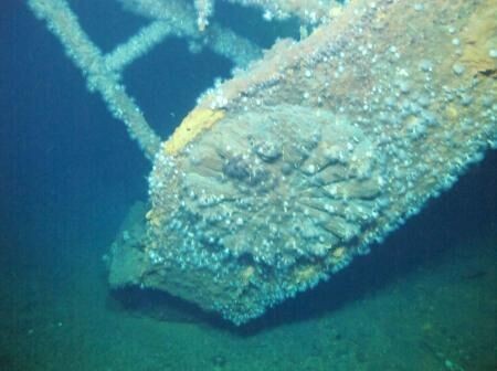 ▲「世界第一戰艦」大和號艦首上的菊花徽章,原有的金箔已經脫落。(圖/翻攝自環球網)