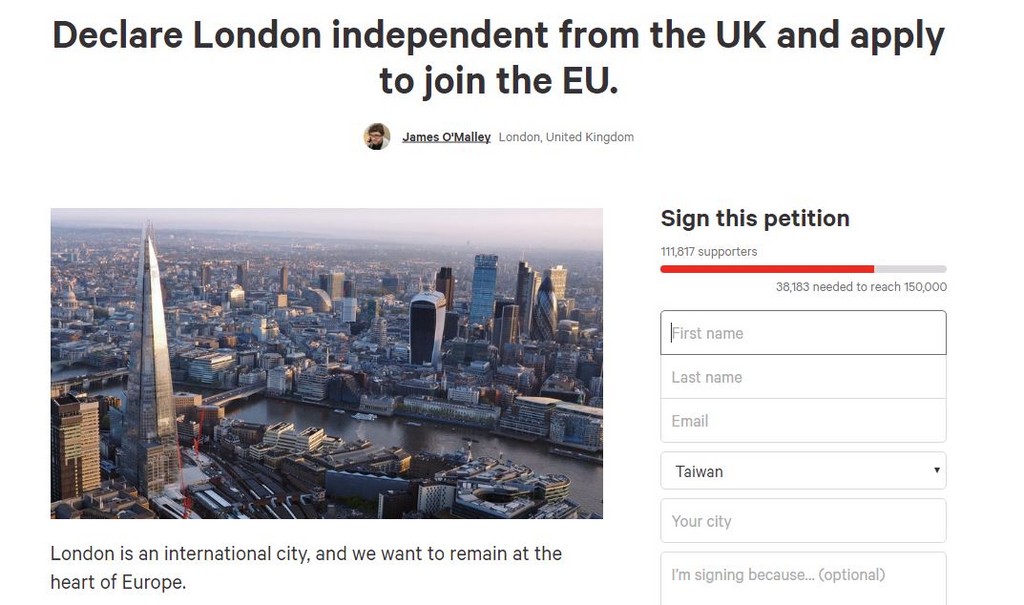 ▲網友發起「倫敦獨立」連署。(圖/翻攝自change.org)