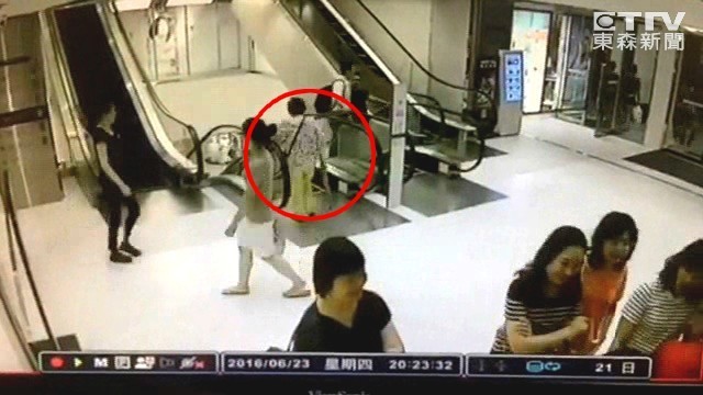 從百貨公司監視器拍下的畫面可見,一名老婦人正搭乘手扶梯要到地下1樓,只見她右手掛著雨傘,左手提著袋子。不久後,老婦的手提袋疑似被隔板卡住,接著把她扯倒後拖行,因為疼痛不斷哀喊求救,後方的女子看到後,嚇得衝上前協助,此時又有另一名男子幫忙救人。