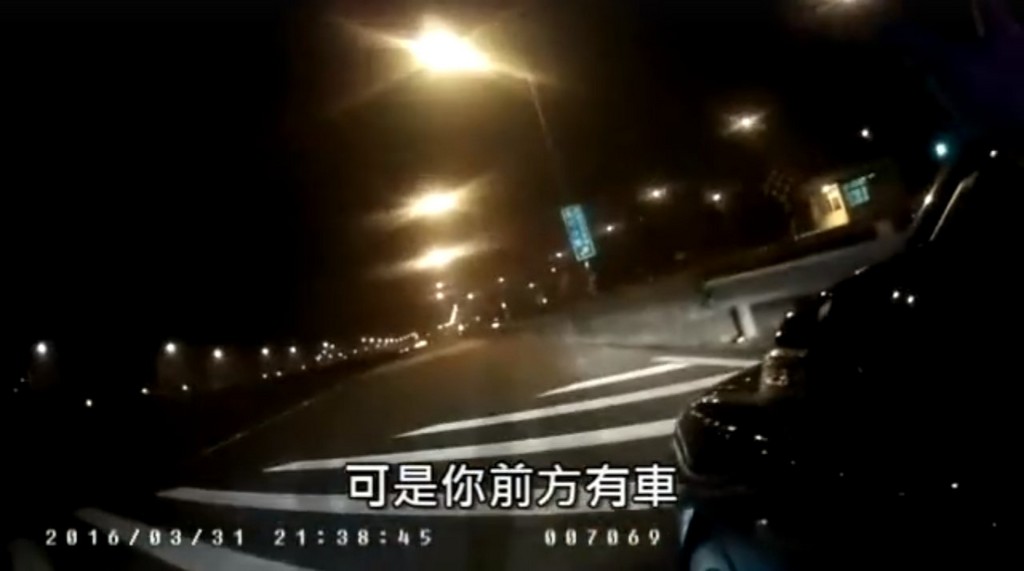 根據影片,員警攔下駕駛說,「你的遠燈一直開啟,沒有路燈的路段,前方怕看不到的話,開著遠燈沒關係;可是你前方有車,法規是100公尺內,前方有車的話就要把遠燈關掉。」