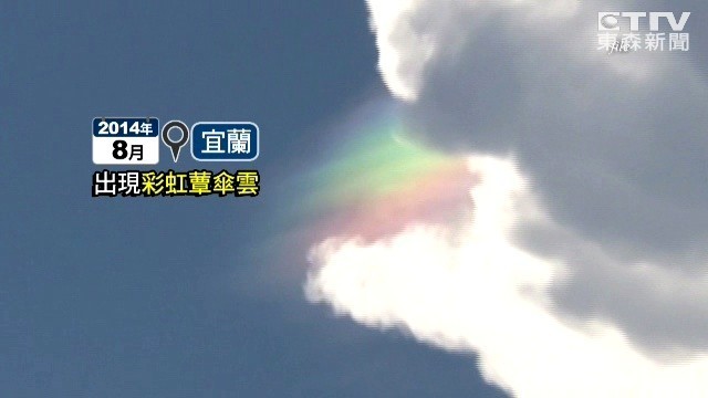 最近的天空相當多變,不僅彰化出現火燒雲,現在綠島也出現了彩虹鳳凰!有民眾拍下,綠島的天空,竟然出現有如彩虹一般的七彩雲,外觀看起來,就像是鳳凰一樣,非常夢幻。其實這種雲,叫做「彩虹蕈傘雲」,因為強烈對流,加上陽光的「繞射現象」就會產生。