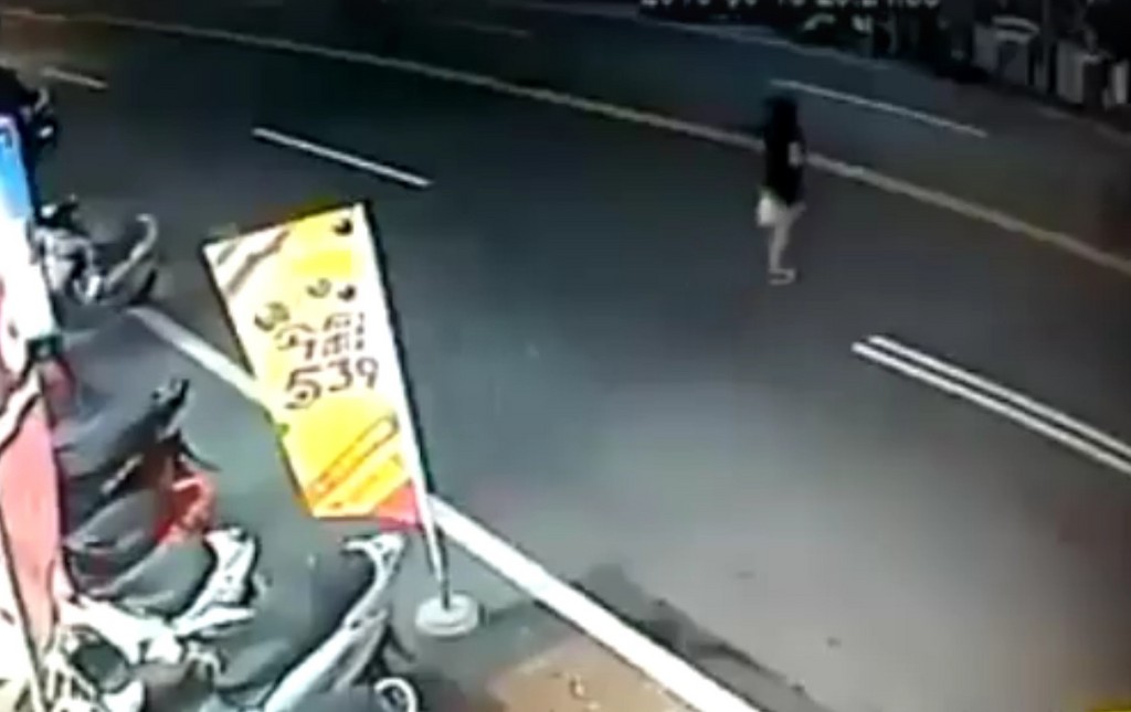 從商家監視器畫面可見,身穿黑衣的女子直接穿越大馬路,幾乎隱身在黑夜中,她大剌剌站在雙黃線上,駕駛人實在很難看清楚。她被輾過後,白色轎車才緊急煞車,人行道上一名男子看見,馬上飛奔穿越馬路想到女子身旁,也差一點被迎面駛來的機車撞上,讓人倒抽一口涼氣。「家長請一定好好教育孩子,千萬千萬不要這樣過馬路。」
