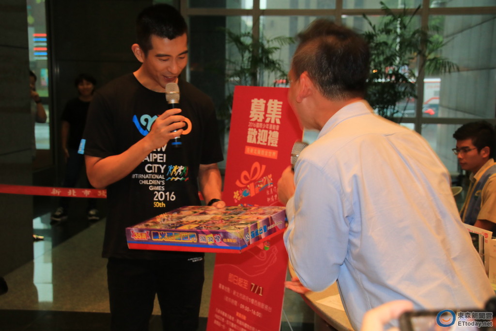 ▲國際少年運動會將在新北市舉辦,修杰楷捐歡迎禮也鼓勵民眾一起共襄盛舉。(圖/記者孫曜樟攝)