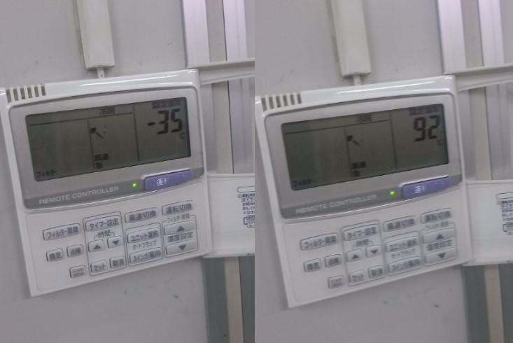 在這種大熱天碰上公司冷氣故障,又看到這「詭異」的一幕,真的會哭笑不得。一名日本網友上班時發現,怎麼冷氣只有兩種溫度可以選擇,分別是攝氏「-35度」和「92度」,讓網友忍不住笑回「不是冷死就是熱死」、「根本蟹老闆」。