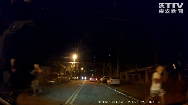 畫面中可以看到,駕駛原本開在文化路上,沒有甚麼行人,突然3名頭戴著牛皮紙袋的男生,就往自己方向狂奔,甚至還不顧車子,在路上亂竄,後面還有一名女子在追,讓他嚇得以為遇上甚麼綁架擄人事件,目擊民眾表示,「就聽到一群人尖叫的聲音,有男有女沿路就一直尖叫,很大聲以為發生甚麼事情。」