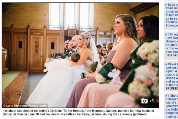 ▲加拿大一名新娘在婚禮上當場哺乳9個月大的女兒,不少網友大讚:美麗又有母愛。(圖/翻攝自每日郵報)