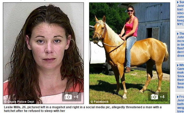 美國佛羅里達州一名妙齡女子,日前在喝酒之後向一名男子求歡,但遭對對方拒絕,而且次數不只一次;事後女子感覺面子掛不住而勃然大怒,竟然拿起斧頭要往對方身上砍下去,所幸男方及時逃出並報警處理,並未釀成意外。