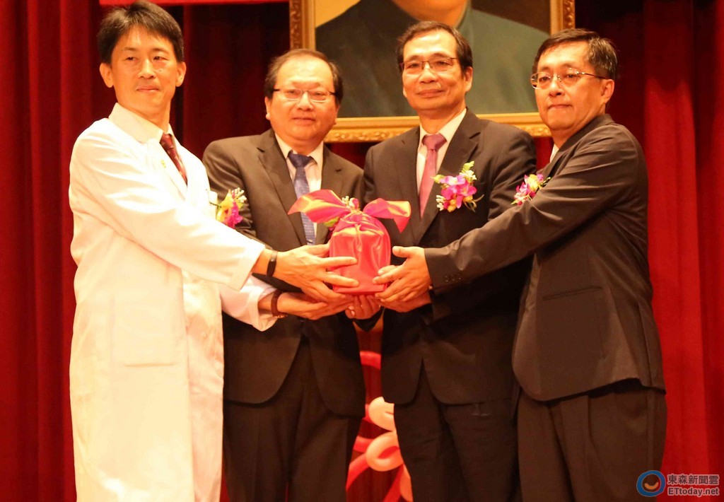 ▲衛福部台南醫院新任院長交接布達典禮,由衛福部常務次長蔡森田與成大醫院楊俊佑院長蒞臨監交,新任院長許博翔(右一)接任視事。(圖/記者林悅攝)