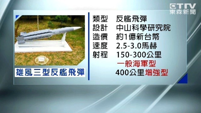 ▼雄風三型反艦飛彈的性能介紹。(圖/東森新聞提供)