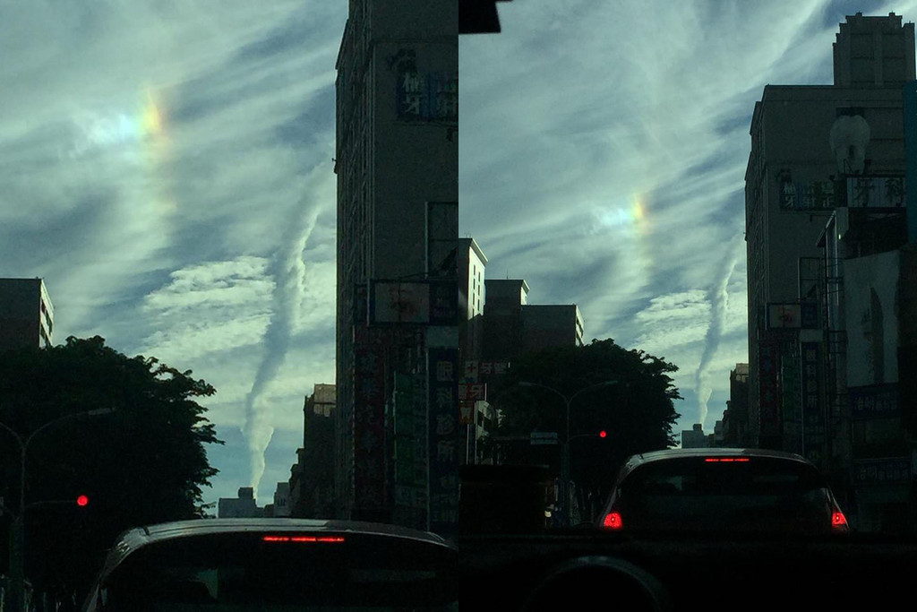 該名氣質女網友向《ETtoday新聞雲》表示,她早上六點多在台中市拍攝到這張照片。對此,網友們紛紛表示,「局部性熱對流上升產生的渦流性現象吧」、「又有飛彈起飛了是吧?!」「好特別喔!」「我也有拍到」、「海姆達爾啟動彩虹橋」、「第二發雄風…」「應該是有法師在召喚什麼」。