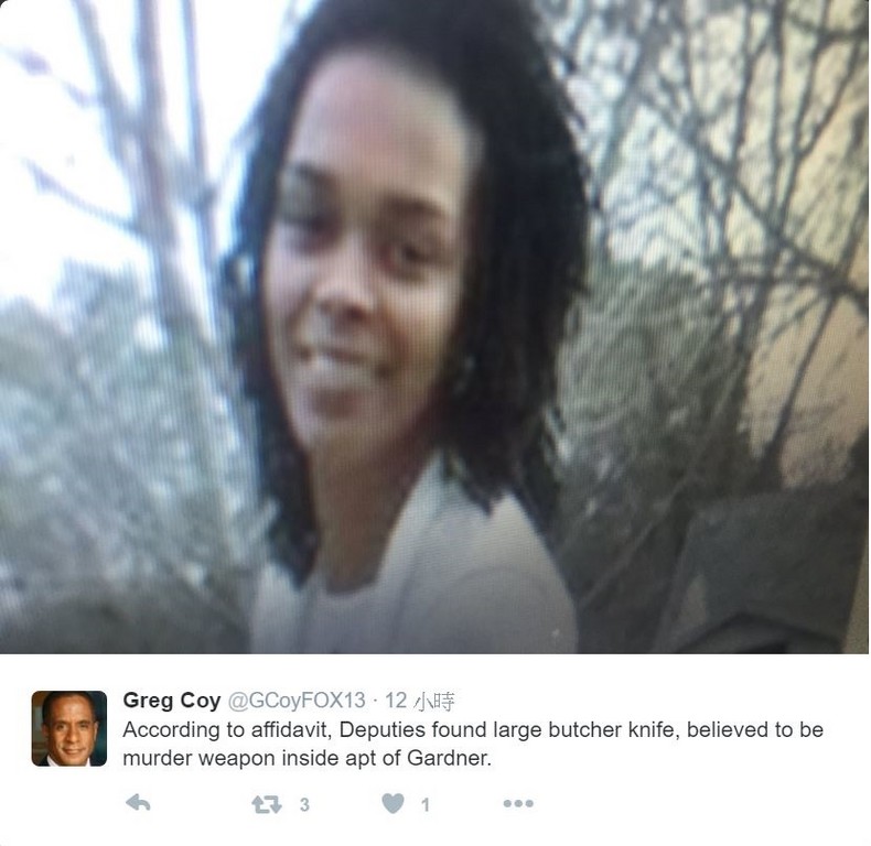 這起人倫悲劇發生在美國的田納西州,1日下午警方接到報案後立即到加德納的住處搜索,發現加德納的手腕跟頸部受傷,並在臥室跟客廳找到3名女兒及1名兒子的屍體,年齡介於6個月大至4歲。據報導,四名孩子的喉嚨全都被割開,警方也在公寓裡找到行兇用沾有血的刀。
