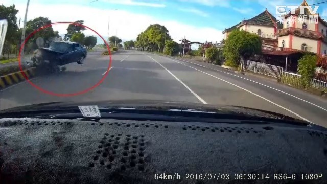 根據挨撞的馬自達CX5行車記錄器顯示,肇事賓士C300從外側車道切入內側車道,直接撞上中央分隔島,接著整輛車宛如「撐竿跳」般、轉90度彈飛,車尾正好掃到倒楣的馬自達,畫面相當驚悚。賓士車4輪朝天,車頭全毀、零件散散落一地且汽油外洩,馬自達則是左側車身慘遭「毀容」。