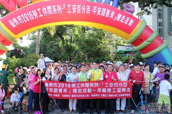 ▲台南市2016勞工休閒系列「工安百分百、平安跟著來」健走活動,3日於白河區關子嶺嶺頂公園熱鬧舉行。(圖/市府提供)