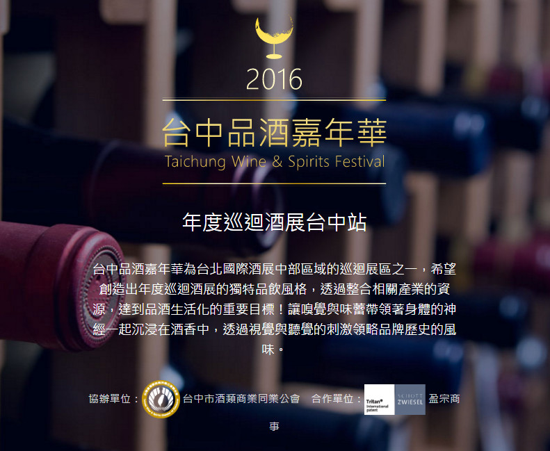 2016台中品酒嘉年華致力推廣品飲文化,除了首次集結多家清酒廠商參與外,更匯集各國得獎酒款。為推廣品酒生活化,展中舉辦【品酒教室】邀請多位達人親自教學,在優雅獨立的空間裡吸收各式酒款知識、品飲方式,及體驗酒款帶來的香氣及口感。另外,主辦單位更規畫了【酒食要醬搭】活動,採用主題式的簡易酒食搭配,讓民眾輕鬆挑選,享受絕妙搭配。詳情請參考官方網站https://www.twsf.com.tw/taichung/