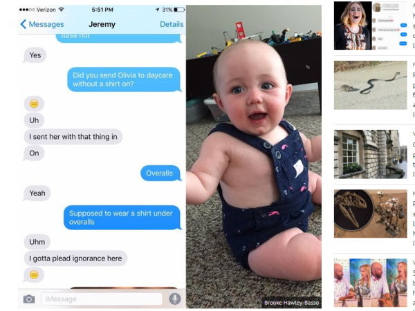 吊帶褲要怎麼穿才會好看呢?平常我們常看到不少人會穿吊帶褲上街,但是要懂得搭配才會好看。最近在美國有一名人父,他幫7個月大的女兒穿衣服,幫女兒穿了一件吊帶褲,但卻沒穿上任何衣服。媽媽看到後十分傻眼,把和丈夫的對話和女兒的照片分享到網路,意外引發網友熱烈的討論。