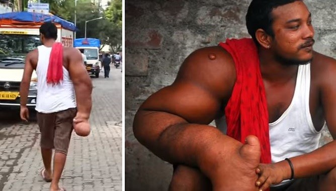 印度一名25歲男子罹患了相當罕見的「巨化症」(gigantism),導致右手組織生長異常,右臂粗大且重達20公斤,不僅影響生活,更被村民視為「惡魔之子」,黯然搬離村莊。