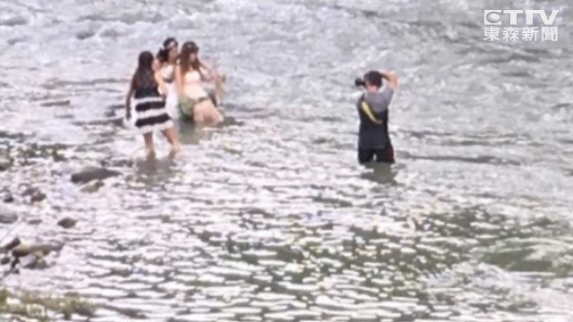 這群人包括3名女子、加上攝影師和助理一共5人,站在溪中擺POSE拍個不停,旁幫還立燈架打燈,前後拍了大約1小時,附近居民看不下去,叫他們趕快離開,否則溪水升高,屆時逃命就來不及了。