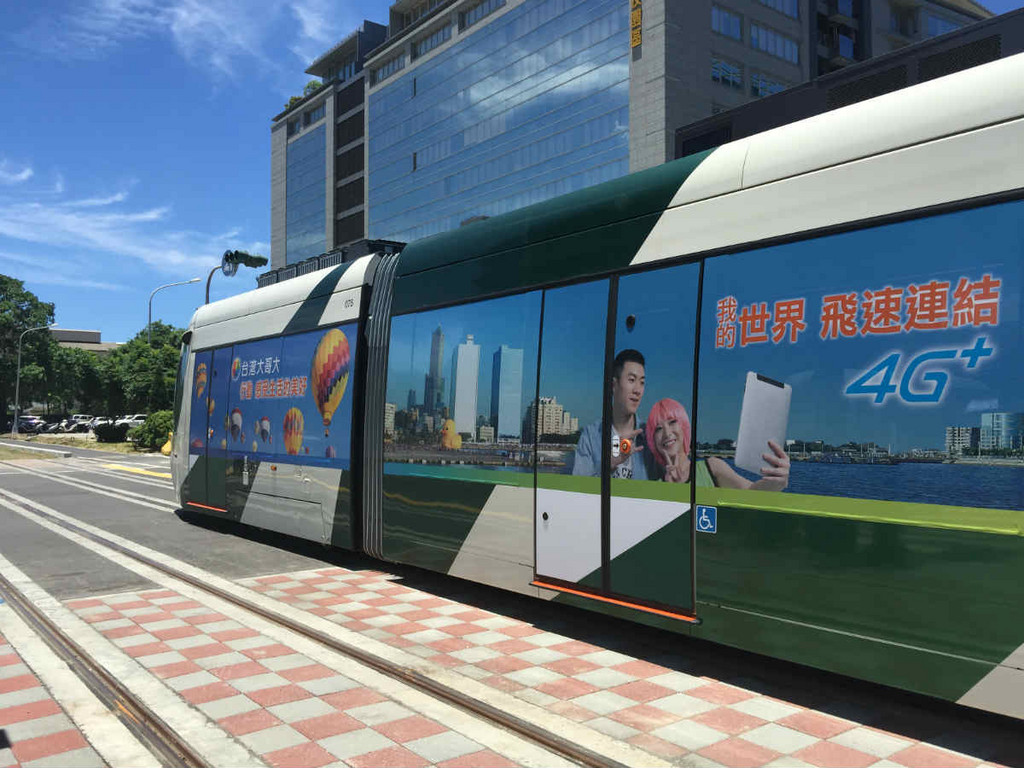 此外,輕軌車體外觀因廣告的包裝,讓列車看起來更活潑、年輕,結合高雄知名地標景點的設計,更讓許多搭乘的民眾覺得親切,大大提升了輕軌列車的在地連結。