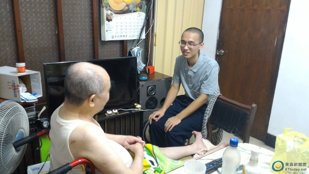 ▲只要一休假,陳彥宏就會到簡姓老翁家中陪伴聊天,就寢時間到,還會將老翁揹到床上。(圖/記者楊佩琪翻攝)