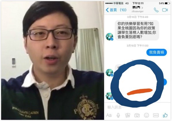 高中職免試入學昨日放榜,就有考生臉書私訊桃園市議員王浩宇,興師問罪道「我沒上高中,你要怎麼負責」,讓他不禁感嘆,「部分老師教育孩子從小把失敗責任推卸給不相關的人」。