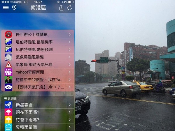 實際測試多款天氣預測App後,發現這款《觀天氣》能綜合掌握所有天氣預測,包括即時更新中央氣象局最新消息、颱風移動行徑、時速、最大風速、最大陣風級數等,就連國外媒體預測消息也能一覽無遺。颱風天另外一項大家最關心的,莫過於停班停課消息,在《觀天氣》中能直接連結到行政院人事行政總處公告,今日到底該不該出門上班上課一打開App就知道。